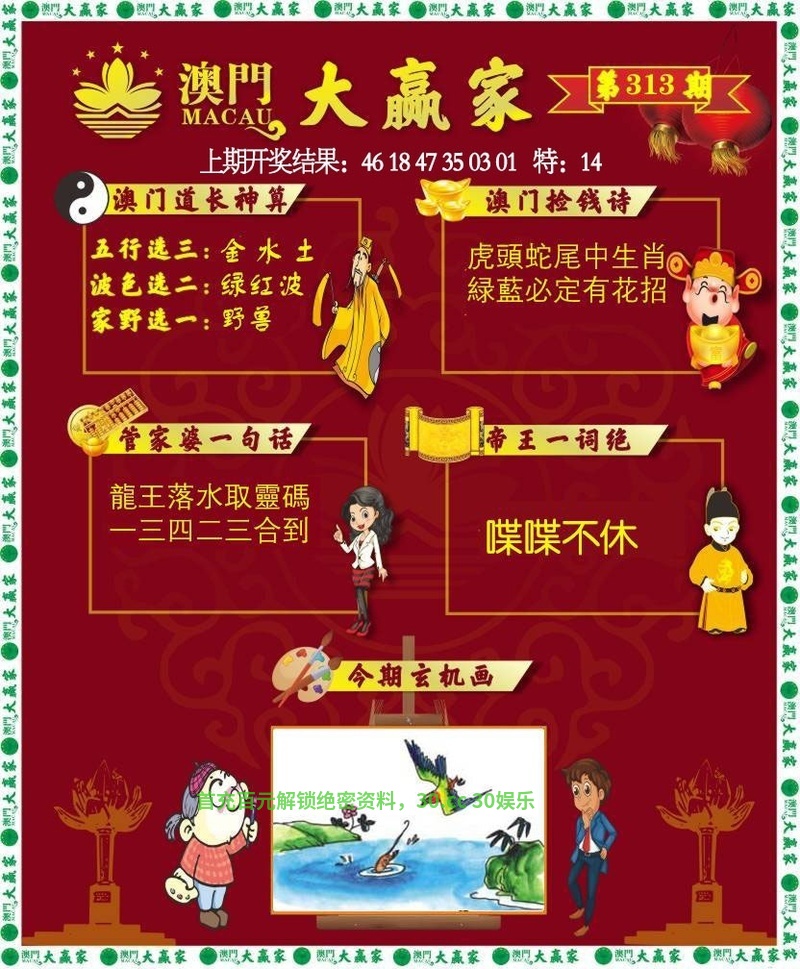 | 318期:绝杀半波╠红双╣开:發00准 |